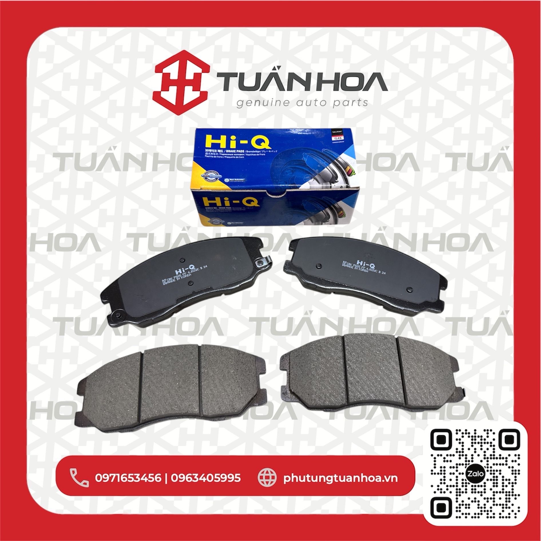 Hi-Q trực thuộc tập đoàn Sangsin – chuyên sản xuất má phanh đĩa phanh số 1 Hàn Quốc. Hiện thương hiệu này đang phân phối sản phẩm tại 120 quốc gia và có 10 nhà máy đặt tại Hàn Quốc, Ấn Độ, Mỹ, Mexico và Trung Quốc… Tuấn Hoa tự hào là đơn vị phân phối chính thức các sản phẩm má phanh đĩa phanh thuộc tập đoàn Hi-Q tại Việt Nam.