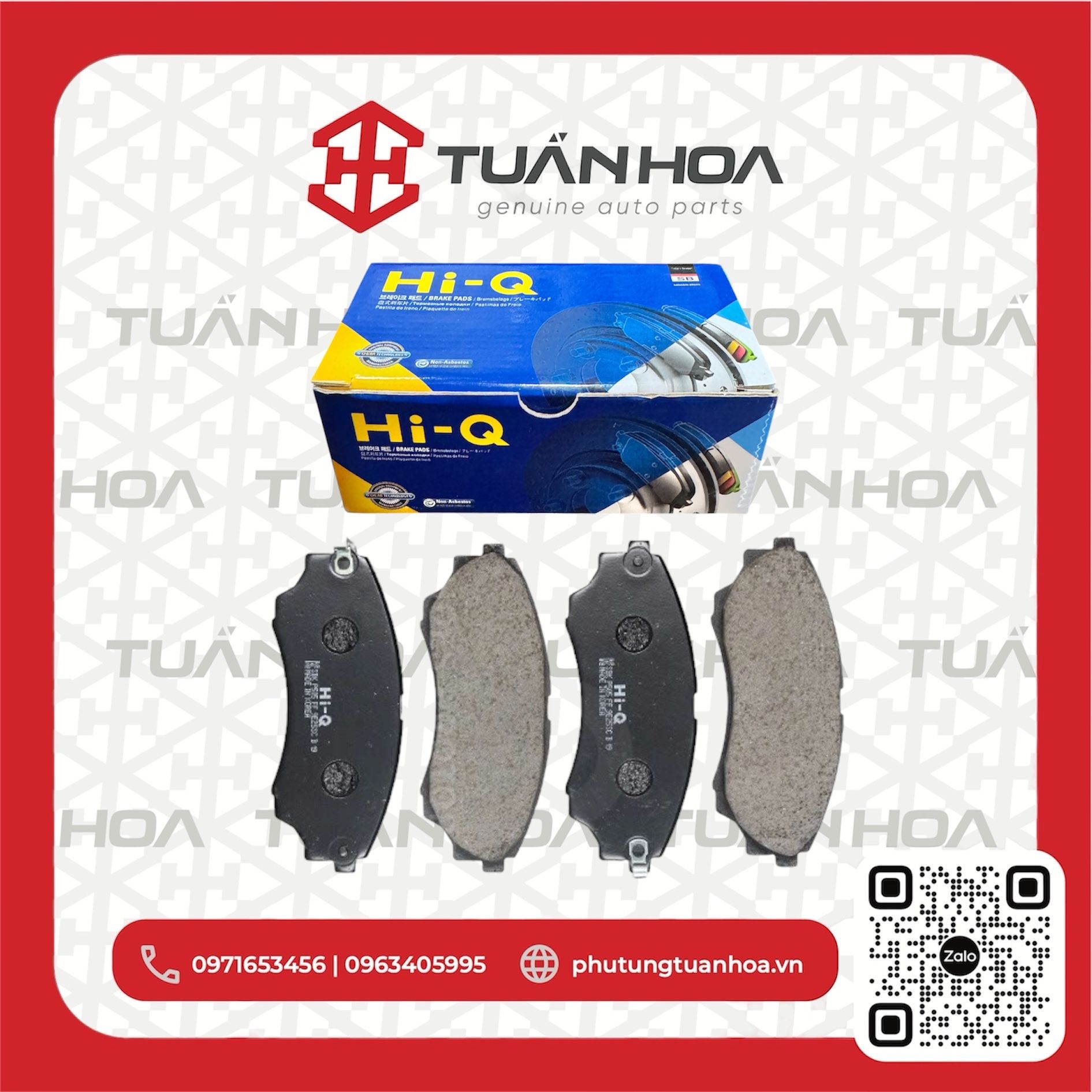 Hi-Q trực thuộc tập đoàn Sangsin – chuyên sản xuất má phanh đĩa phanh số 1 Hàn Quốc. Hiện thương hiệu này đang phân phối sản phẩm tại 120 quốc gia và có 10 nhà máy đặt tại Hàn Quốc, Ấn Độ, Mỹ, Mexico và Trung Quốc… Tuấn Hoa tự hào là đơn vị phân phối chính thức các sản phẩm má phanh đĩa phanh thuộc tập đoàn Hi-Q tại Việt Nam.