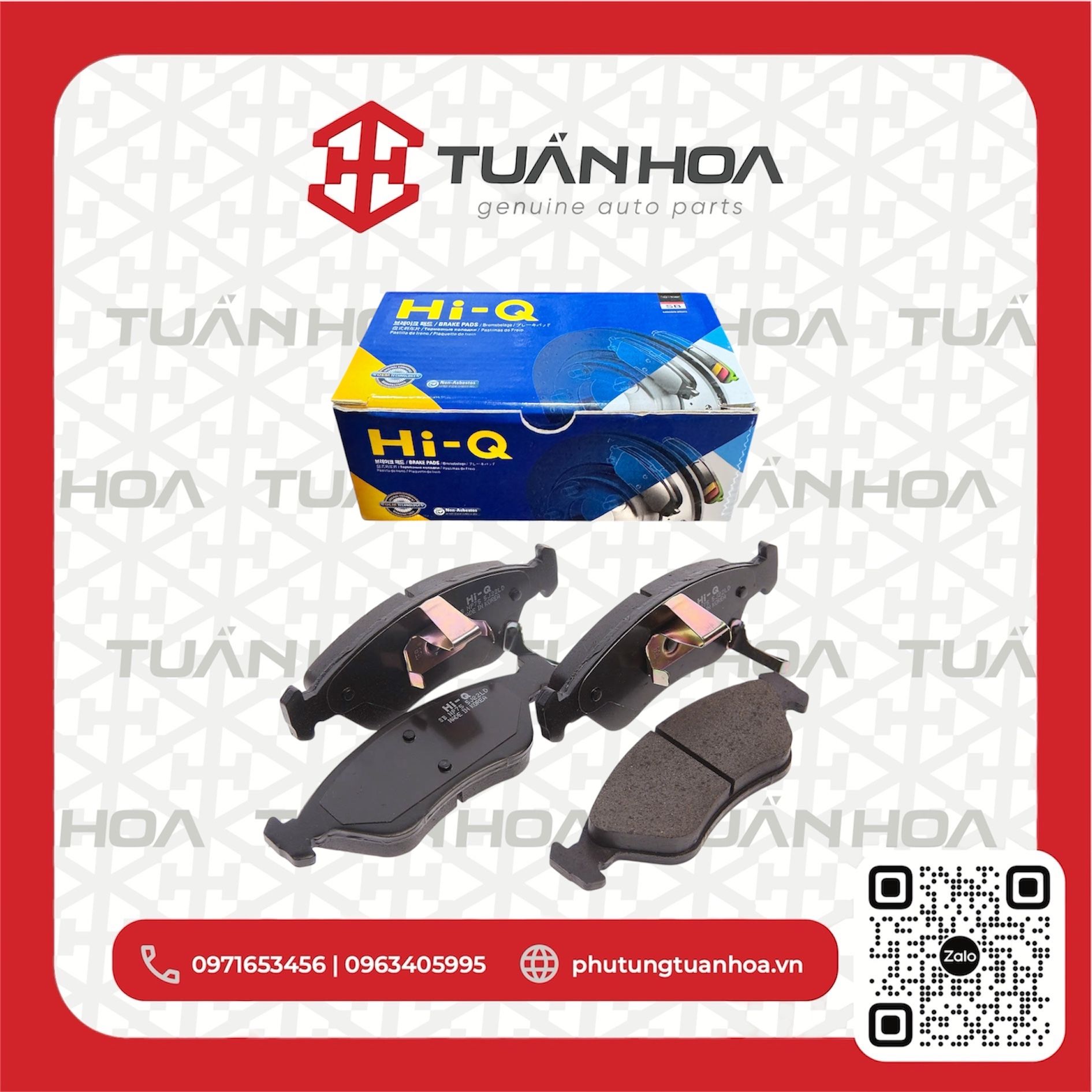 Hi-Q trực thuộc tập đoàn Sangsin – chuyên sản xuất má phanh đĩa phanh số 1 Hàn Quốc. Hiện thương hiệu này đang phân phối sản phẩm tại 120 quốc gia và có 10 nhà máy đặt tại Hàn Quốc, Ấn Độ, Mỹ, Mexico và Trung Quốc… Tuấn Hoa tự hào là đơn vị phân phối chính thức các sản phẩm má phanh đĩa phanh thuộc tập đoàn Hi-Q tại Việt Nam.