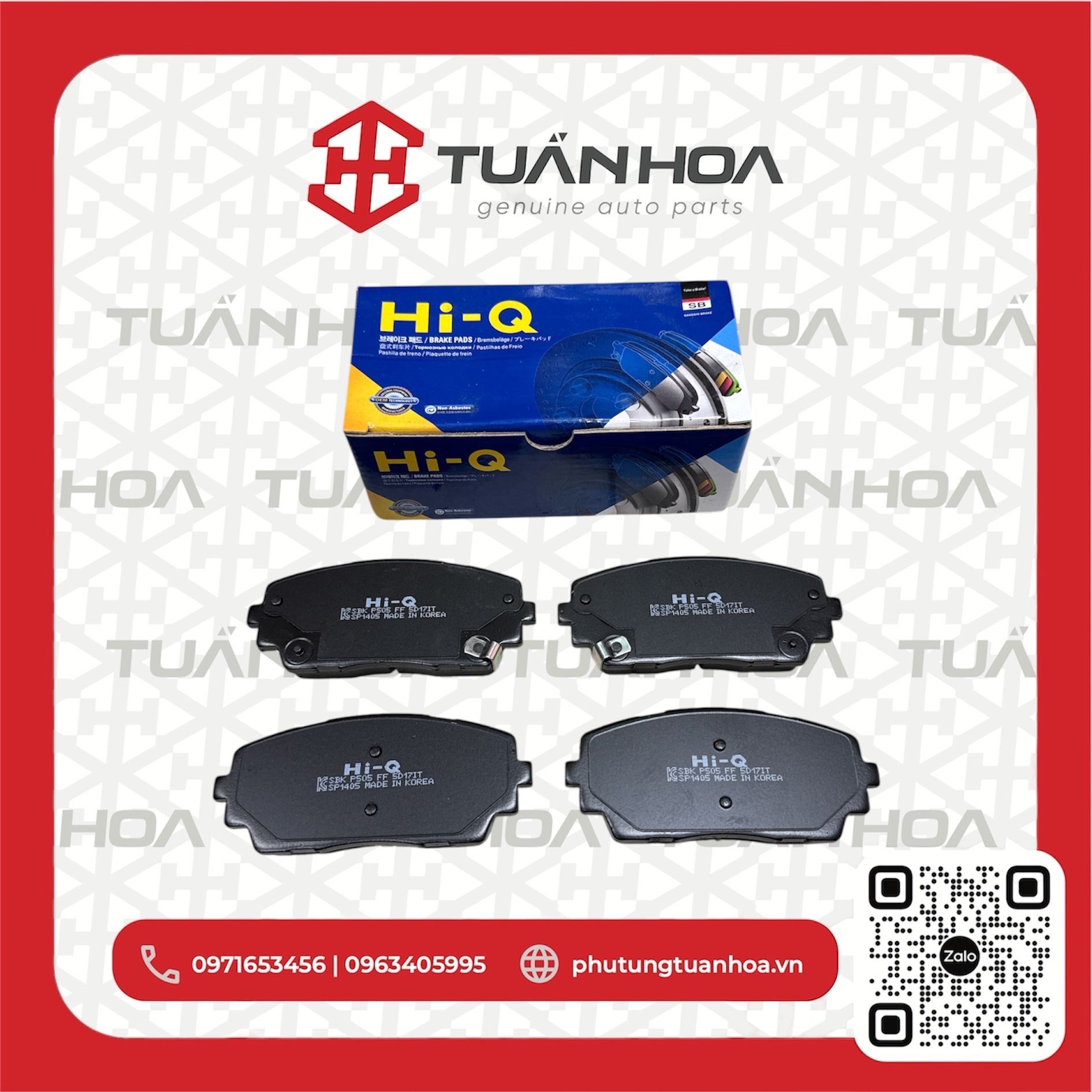 Hi-Q trực thuộc tập đoàn Sangsin – chuyên sản xuất má phanh đĩa phanh số 1 Hàn Quốc. Hiện thương hiệu này đang phân phối sản phẩm tại 120 quốc gia và có 10 nhà máy đặt tại Hàn Quốc, Ấn Độ, Mỹ, Mexico và Trung Quốc… Tuấn Hoa tự hào là đơn vị phân phối chính thức các sản phẩm má phanh đĩa phanh thuộc tập đoàn Hi-Q tại Việt Nam.